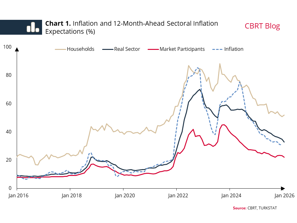 Inflation expectations play a significant role in inflation dynamics, as they influence multiple channels, including consumption and saving decisions, portfolio preferences, and pricing behaviors. In line with its primary objective of price stability, the Central Bank of the Republic of Türkiye (CBRT) employs the inflation expectations of economic agents as a key input in policy formulation. In this blog post, we examine the role of perceived inflation, prominent items in the consumer basket, and central bank communication in shaping household expectations through a comparative lens of global examples.