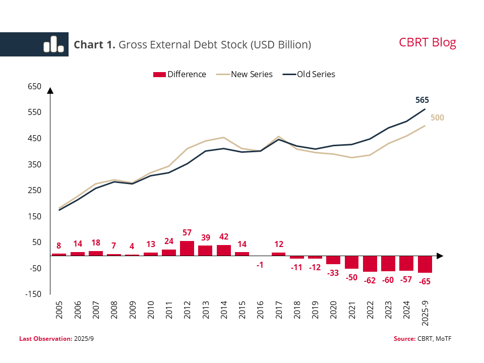 To ensure publication of data on external liabilities under one roof with a holistic approach as part of coordinated efforts between the Republic of Türkiye Ministry of Treasury and Finance (MoTF) and the Central Bank of the Republic of Türkiye (CBRT), the CBRT started publishing the External Debt Statistics of Türkiye as of March 12, 2026, which were previously released by the MoTF. Additionally, as part of the efforts to apply the residency principle in Balance of Payments Statistics, the CBRT also began employing new microdata sources to compile securities interest expenditures. In this blog post, we address the methodological grounds and the implications of the revisions in Türkiye’s external debt and balance of payments statistics.