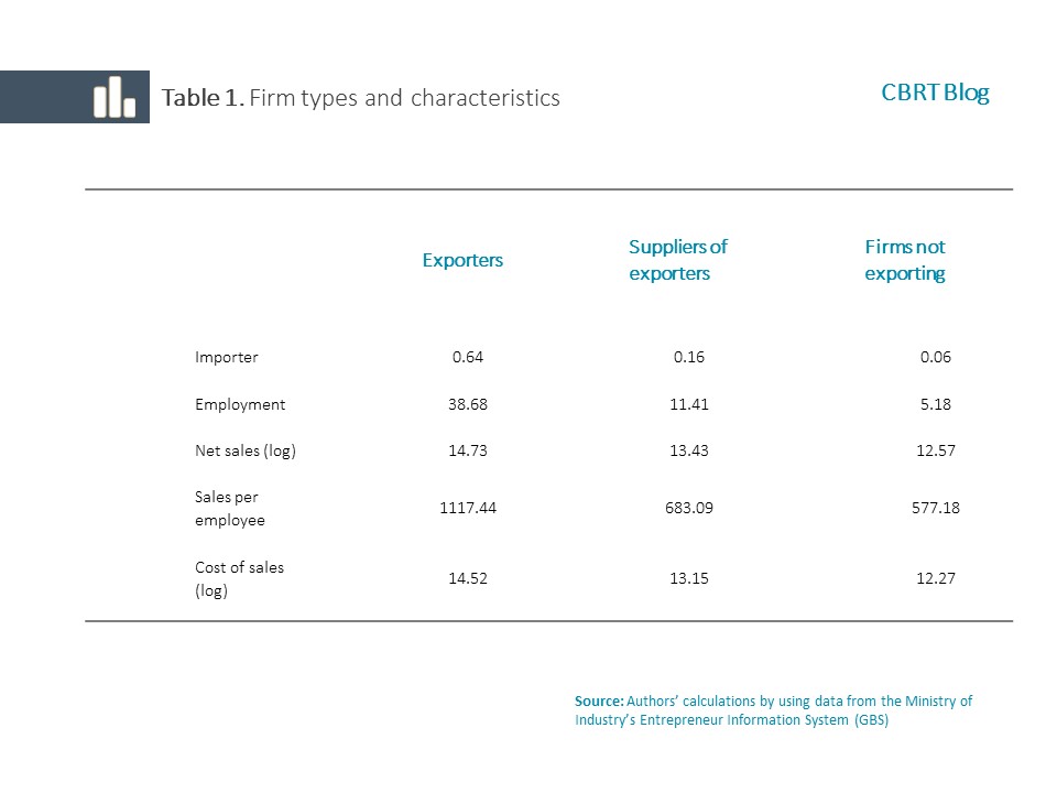 Table 1, which shows average characteristics of companies in the administrative customs data, presents these two trends. In our Akgunduz and Fendoglu (2019) study, we were able to consider these trends by using administrative customs records and supply-purchase documents between companies. Moreover, instead of the input-output tables prepared for only two years (2002 ve 2012) and listed on a sectoral basis, the study allows input-output calculations on a yearly basis and for each company.