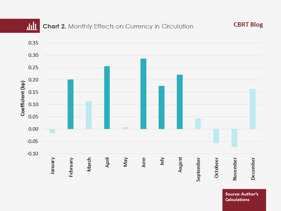 In sum, the findings of our analyses suggest that seasons, days, feasts and wage payment periods cause significant fluctuations in the growth of currency in circulation. While households’ and banks’ cash demand may vary according to variables such as income level and inflation rates in addition to developments in the utilization of alternative payment instruments; it should also be taken into account that seasonal, daily and calendar effects could influence the cash demand periodically.