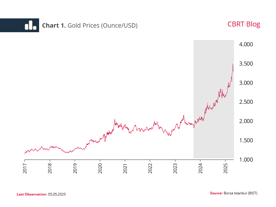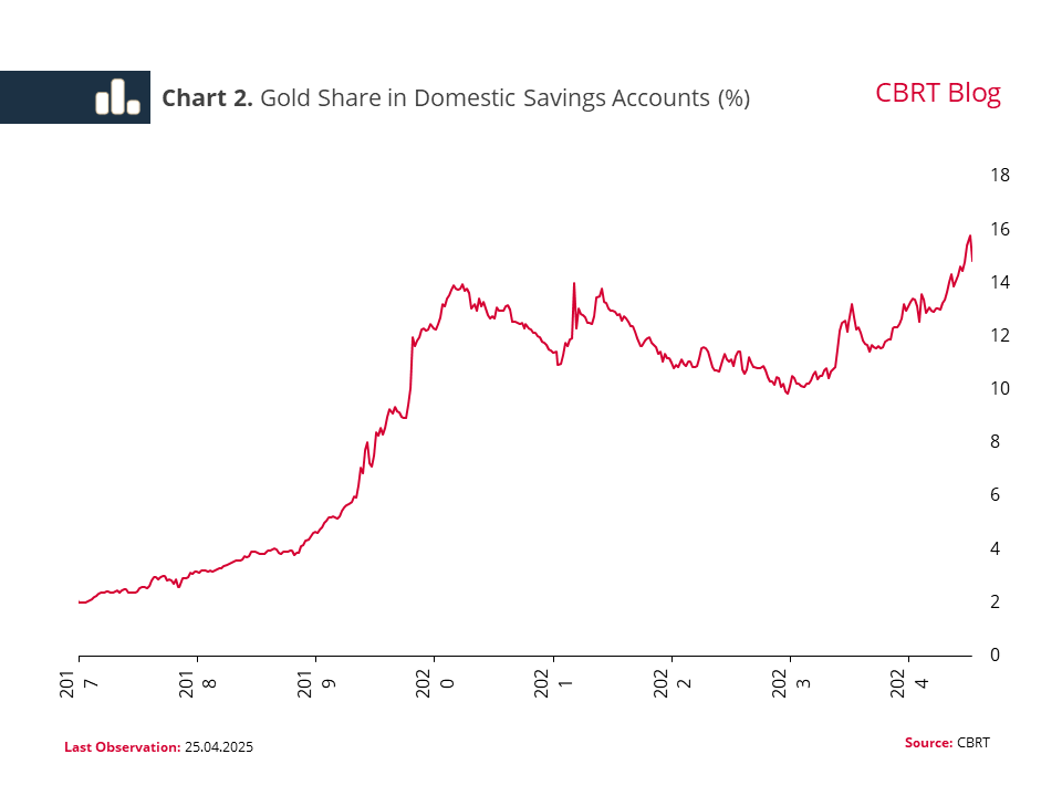 [2] Similarly, physical gold holdings are also estimated to have increased. For further information: CBRT, Inflation Report 2025-I, Box 2.5 Valuation Effect on Household Assets.