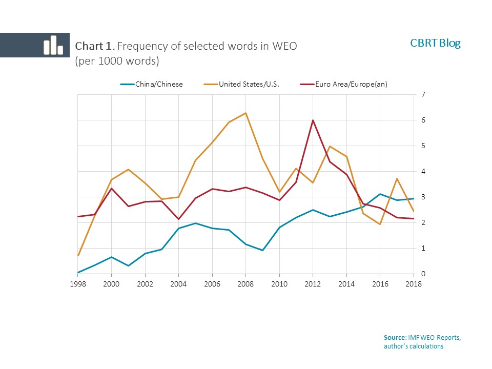 We took a different approach to show the growing significance of the Chinese economy across the globe and evaluated how frequently China comes up in the IMF’s semiannual World Economic Outlook (WEO). As seen in Chart 1, China has received an ever-increasing weight in the WEO over the past 20 years, except during the global financial crisis. In fact, on average, WEO texts and charts mentioned China more often than the US and the euro area/Europe between 2014 and 2018 [1].