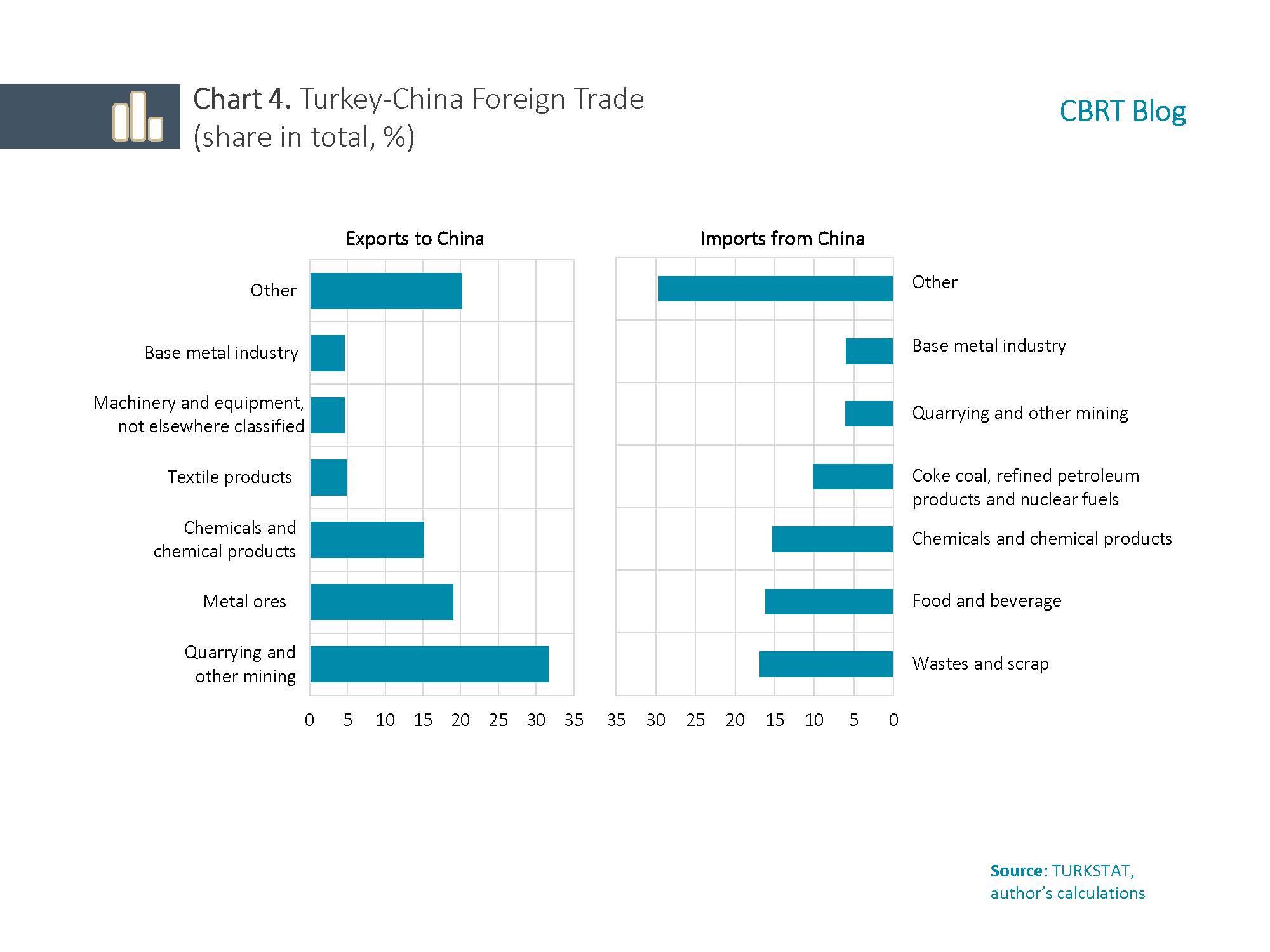 In conclusion, although Turkey currently seems to be less exposed to China (except for industries such as mining), with China’s ever-increasing weight in the global economy, it would be reasonable to expect direct and indirect effects to become more pronounced. Moreover, the effect that China will have on global financial markets should be monitored carefully in terms of any foreign exchange and asset market turbulence it may cause through changes in global risk appetite.